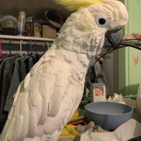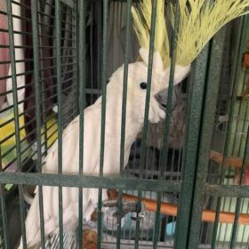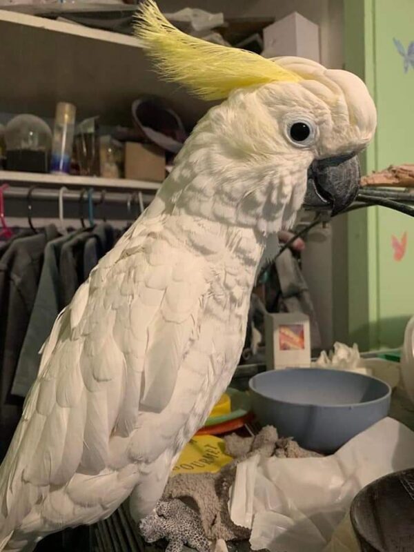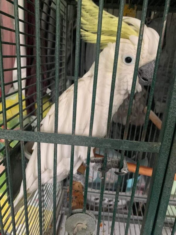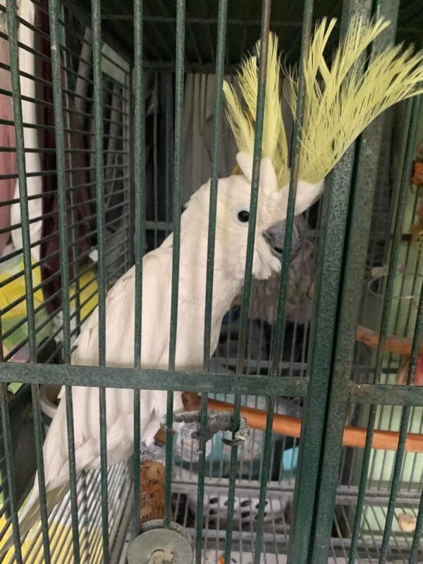 Stoli is 30 years old. He was rescued from an older couple. Unfortunately their great grandson use to scream at the bird “shut up”. They had him for 22 years and paid attention to him for the first two then he was stuck in his cage. He gets upset when you put him back in. Which means he loves being out of his cage. They were feeding him whatever they ate. 3 strips of bacon and pasta. Peanut butter and jelly. He gets fresh fruit and vegetables now. Bird popcorn and parrot food.